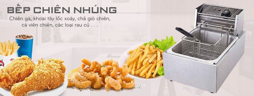 - Bếp chiên nhúng ngập dầu cung cấp năng lượng nhiệt lớn, nhiệt độ lên nhanh và có thể kiểm soát được nhiệt độ tuỳ biến để nấu ăn các sản phẩm thức ăn nhanh.