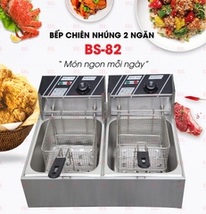 Bếp chiên nhúng ngập dầu 2 ngăn BS-82 được làm bằng inox sáng bóng có khả năng chống gỉ, nhẹ nhàng, nhỏ gọn, mỗi ngăn có thể chứa 6 lít dầu. Đối với chiếc bếp chiên điện công nghiệp có thể giúp cho người sử dụng chế biến các món ăn được nhanh chóng, tiện dụng hơn và tiết kiệm được thời gian.